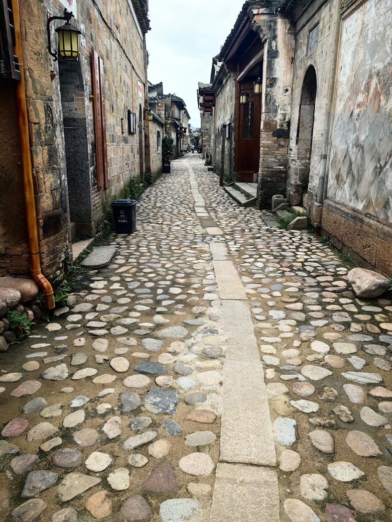 街北犹存的古建筑群,龚氏老宅木构沉稳,卍字纹窗棂后,依稀可见当年书生秉烛夜读的身影;裘氏家祠更加轩宇堂皇,雍正年间的砖雕牌坊上,龙凤穿云、八仙过海,斑斓彩绘历经三百年风雨仍熠熠生辉。最奇特的是“福字楼”,跨入门厅便入迷宫——后厅竟以天井为轴,分列东、西、南、北四厅,当地人谓之“十字厅”。抚过弧形轩顶下雕花的梁枋,指尖触及时光缝隙,柱础牡丹怒放,地砖幽光如镜。