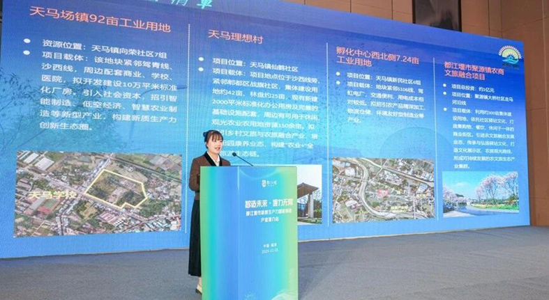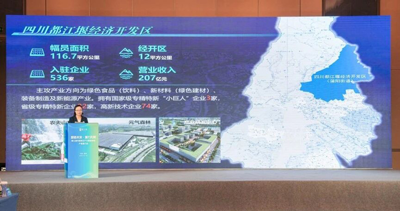 在城市价值推介环节,都江堰市商务和投促局围绕都江堰市生态优势、历史文化、资源禀赋等方面做城市价值推介,向与会企业生动展示了都江堰市优越的资源条件、强劲的市场潜力以及坚实的产业基础。四川都江堰经济开发区围绕绿色食品、新材料、装备制造及新能源产业开展推介,发布“天府珍水”食品饮料产业园、低空飞行器生产等6大项目机会清单;都江堰精华灌区粮果产业园围绕全猕猴桃产业链、粮菜粮药产业、农商文旅体康融合发展开展推介,发布都江堰市聚源镇农商文旅融合、滨河仙草村新质生产力发展基地等10个优质项目需求,诚邀企业参与“农业+智造”融合项目,共享协同发展新机遇。