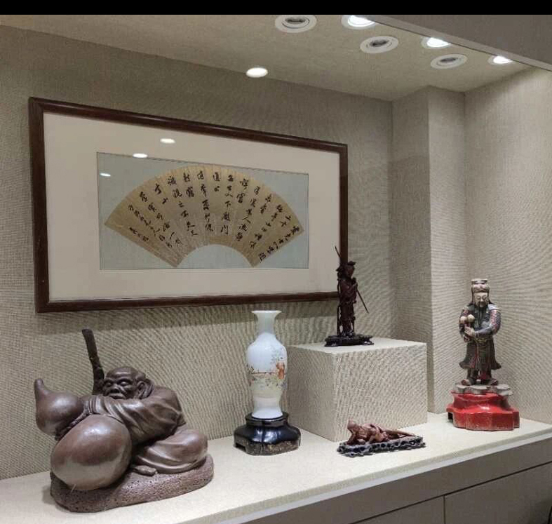 林昊的家四处都是宝物,这里俨然是一个私人博物馆。进门显要处悬挂的是吴昌硕的书法作品,楼梯转角处悬挂着岭南派大师黎雄才的 “何必见千里,自然生远心” 书法作品、郎静山的摄影原作、清代何维朴的书法作品等。而书房兼茶室的空间则放满了他四处收罗或竞拍来的精品,许多是博物馆级别的。这里有木雕、石雕、瓷瓶、铜壶、紫砂器、牌匾、漆画、字画等,琳琅满目。这里的每一件宝贝以及主人寻宝的过程都有故事,它们在默默告诉我们收藏的意义。其实收藏就像图书一样,当你有了迷茫,翻开书页的时候,所有的东西都活过来了,并且为你点起一盏明灯,照亮你生命的路。